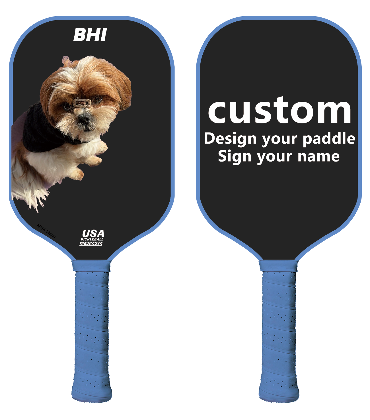 Hello,everyone,Welcome to the BHI pickleball paddle self-customization platform! This is the Gospel for all pickleball players. Here, your paddle will get a unique "personalized" identity. Thinking about it ,For very few quantity pickleball paddle, even if you want to make only one paddle, we also can help you customize it to create your own exclusive equipment elf! Isn't this a surprising thing? How do we do that, your and family by choosing prefer paddle shapes styles we offer , upload your favorite pattern on paddle face, also can sign your and family name on the paddle to UV Printing on demand, at the same time you can choose the paddle face material , and paddle accessories(edge guard, rubber, grip)colors, then in just 2 weeks, you will have the private customized pickleball paddle,which is the unique paddle in the world belongs to you, whether your and family take the court with joy and confidence , or as a gift, souvenir, club, team, etc, this is your best choice,that is all amazing!meaningful!Let everyone,every family, every organization, every club have own private customized pickleball paddle, we are professional and innovative factory-BHI pickleball paddle self-customization platform here to help anytime!One day, everyone active in the pickleball court have a pickleball paddle signed and designed by youself. this is our dream,our source of motivation for long-term struggle.